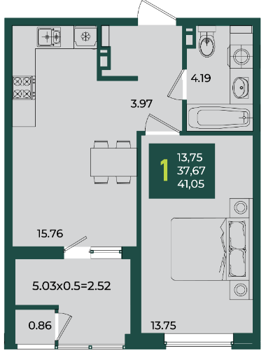 Продается однокомнатная новостройка, 41.05 кв.м., 3/18 эт