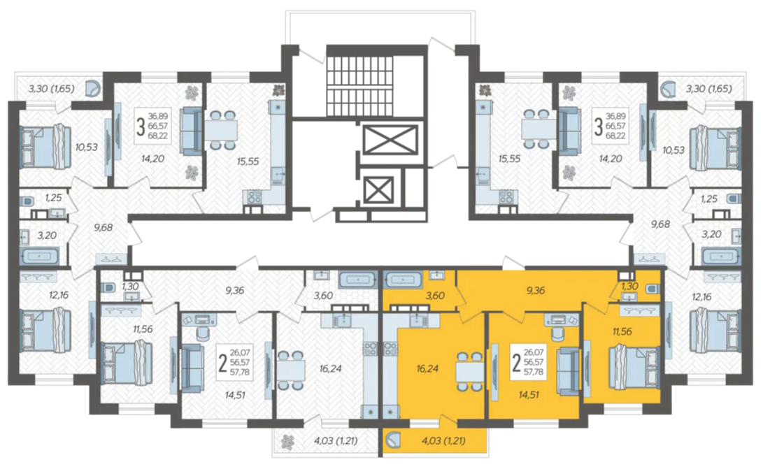 Продается 2-х комн. новостройка, 57.78 кв.м., 9/12 эт