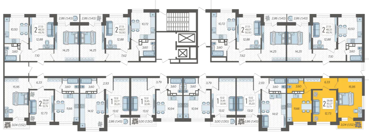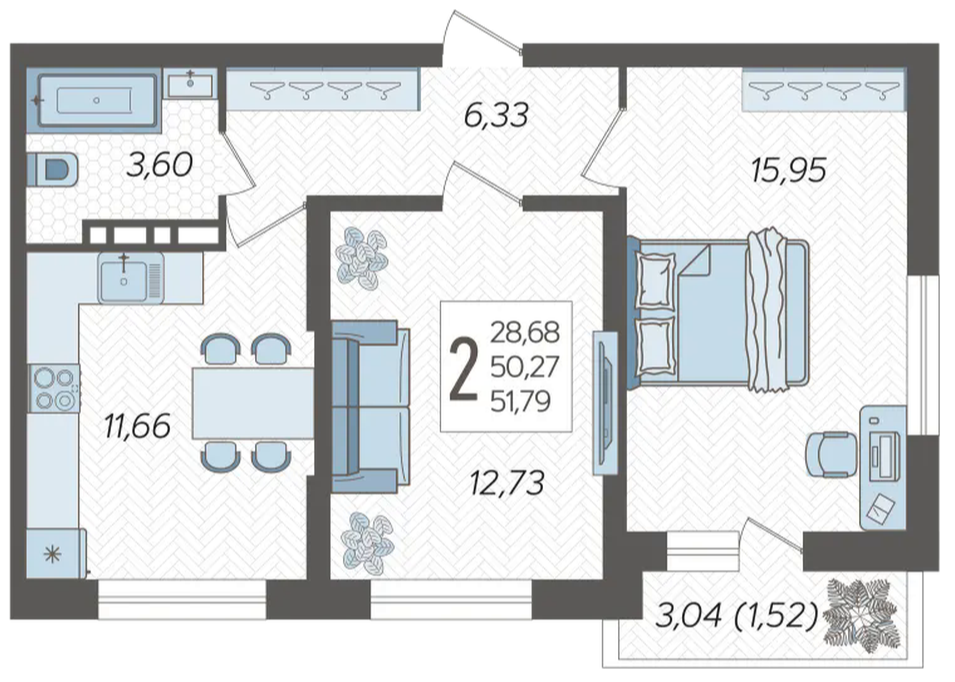Продается 2-х комн. новостройка, 51.79 кв.м., 4/16 эт