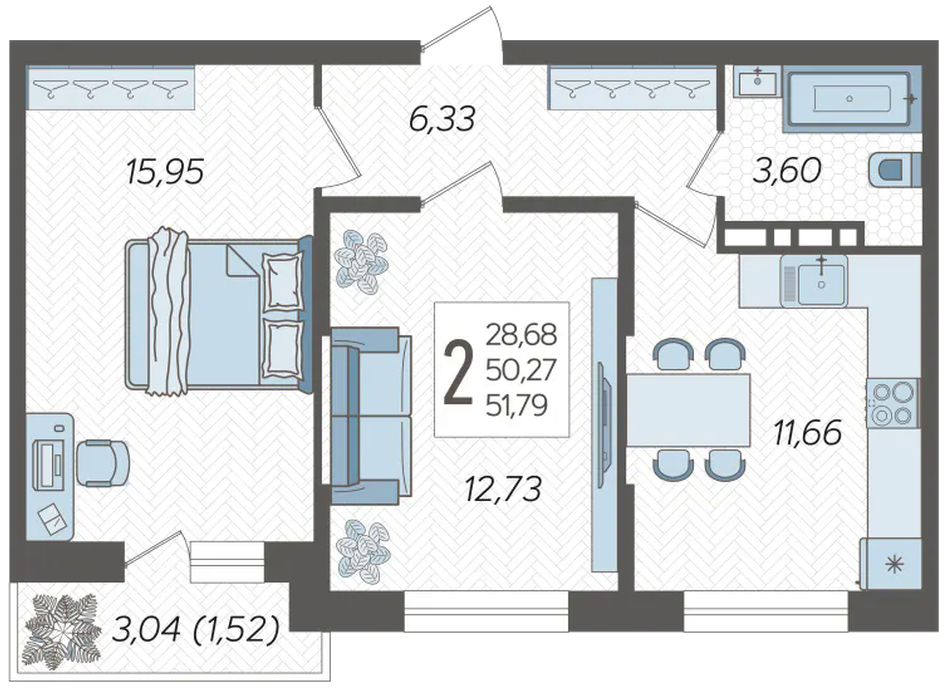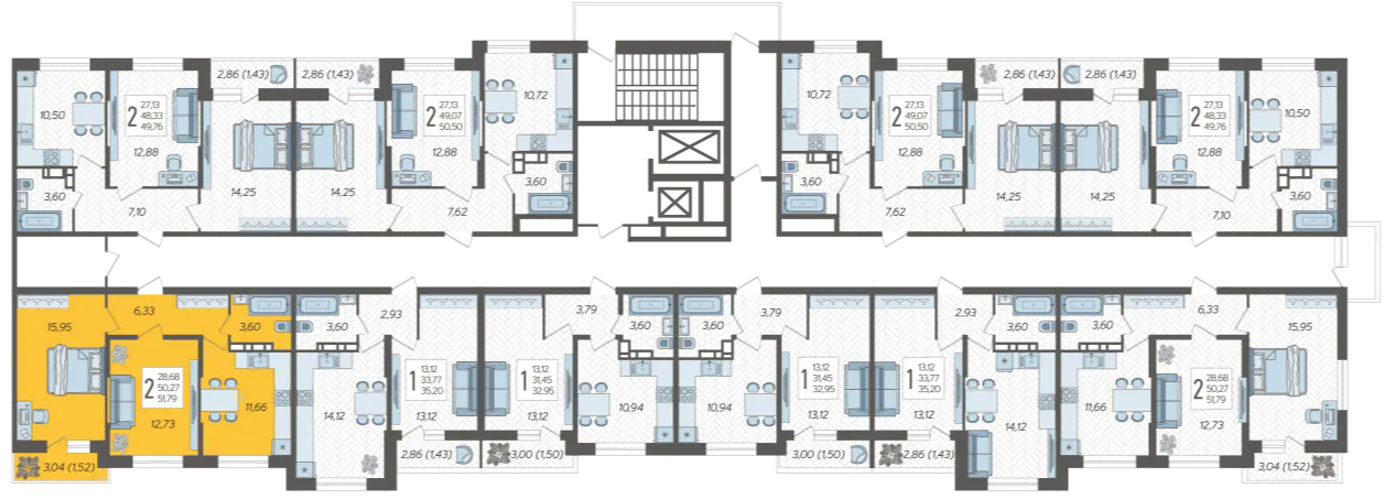 Продается 2-х комн. новостройка, 51.79 кв.м., 10/16 эт