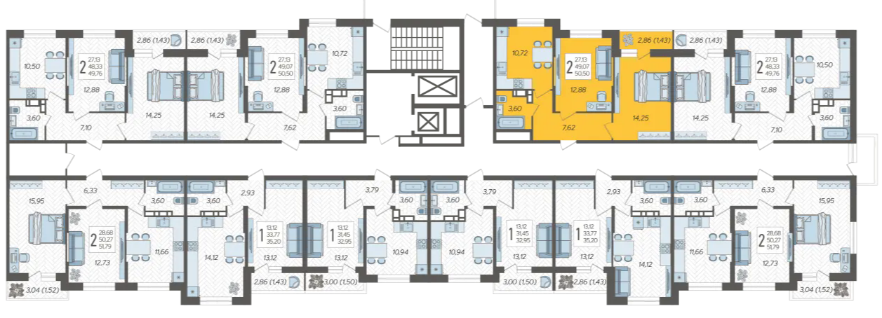 Продается 2-х комн. новостройка, 50.5 кв.м., 12/16 эт