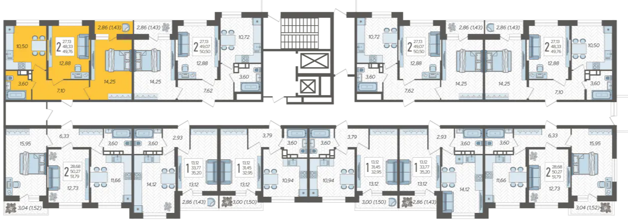 Продается 2-х комн. новостройка, 49.76 кв.м., 14/16 эт
