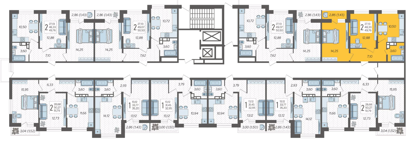Продается 2-х комн. новостройка, 49.76 кв.м., 15/16 эт