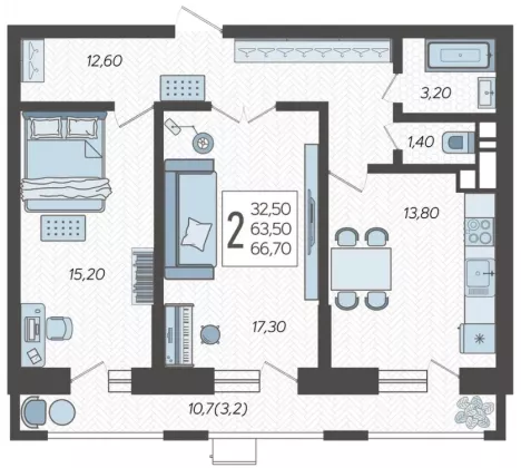 Продается 2-х комн. новостройка, 67.82 кв.м., 6/12 эт