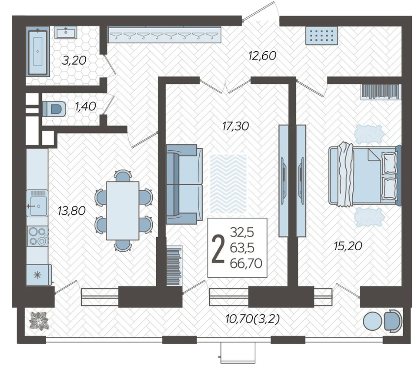 Продается 2-х комн. новостройка, 68.01 кв.м., 10/12 эт
