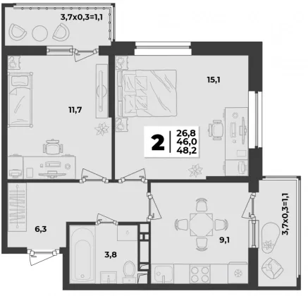 | Жилая площадь | 26.8 |