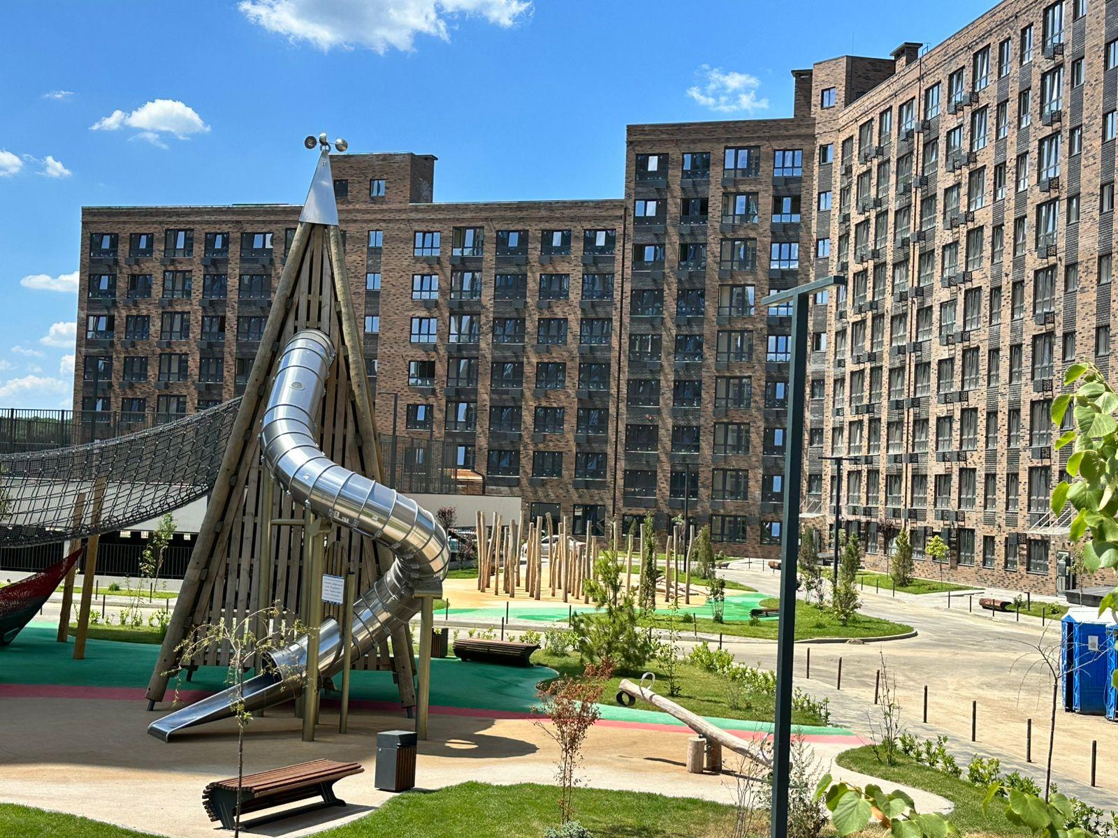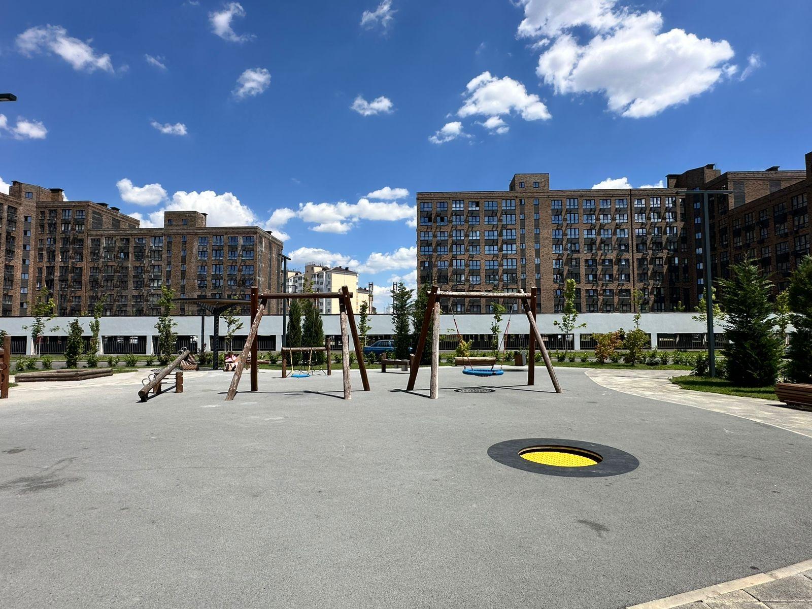 Современные детские площадки с безопасным покрытием,