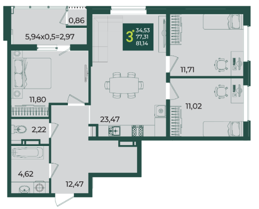 Продается 3-х комн. новостройка, 85.25 кв.м., 18/18 эт
