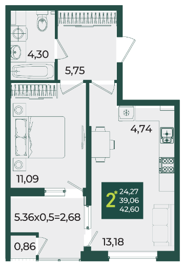 Продается 2-х комн. новостройка, 44.65 кв.м., 3/18 эт