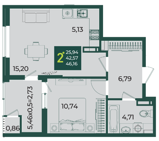 Продается 2-х комн. новостройка, 48.05 кв.м., 16/18 эт