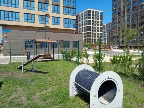 На территории есть площадка для выгула собак.