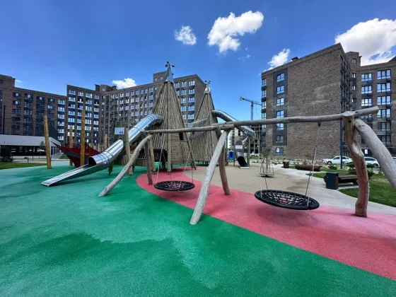 Современные детские площадки с безопасным покрытием,