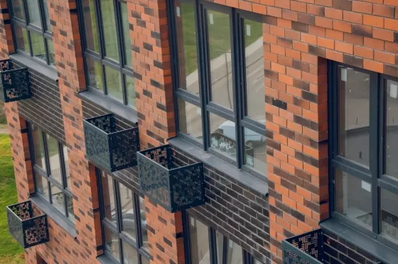 Витражное остекление входных групп, французские балконы создают стильный и элегантный внешний вид нового микрорайона..