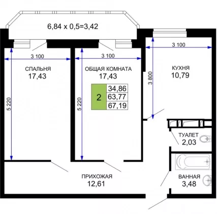 Продается 2-х комн. новостройка, 67.19 кв.м., 14/19 эт