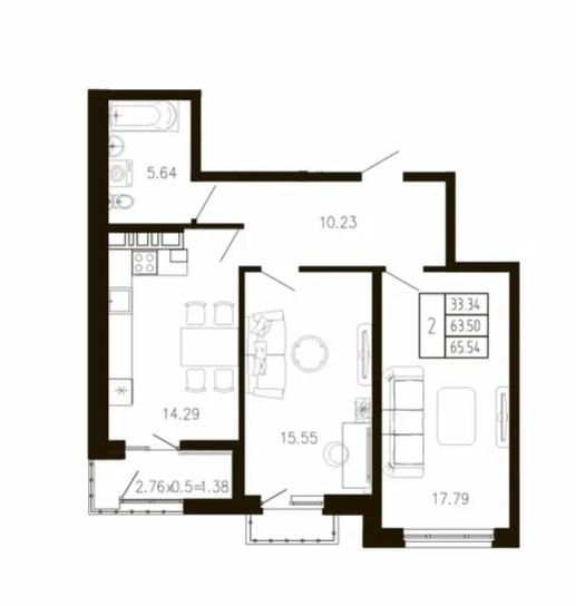| Площадь, кв.м. | 65.54 |
