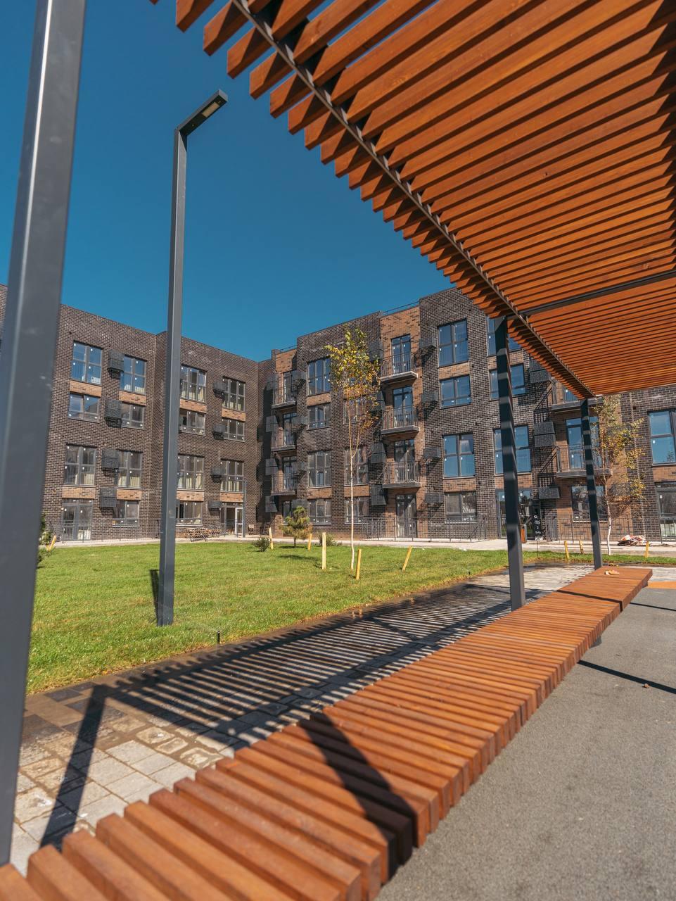 Современный жилой комплекс, 4 этажный дом с лифтом,  дизайнерские входные группы, просторная придомовая территория с арт объектами, зонами отдыха для взрослых и детей, площадки для занятия спортом, парковочные места.