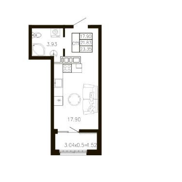 Продается Студия новостройка, 23.35 кв.м., 5/9 эт