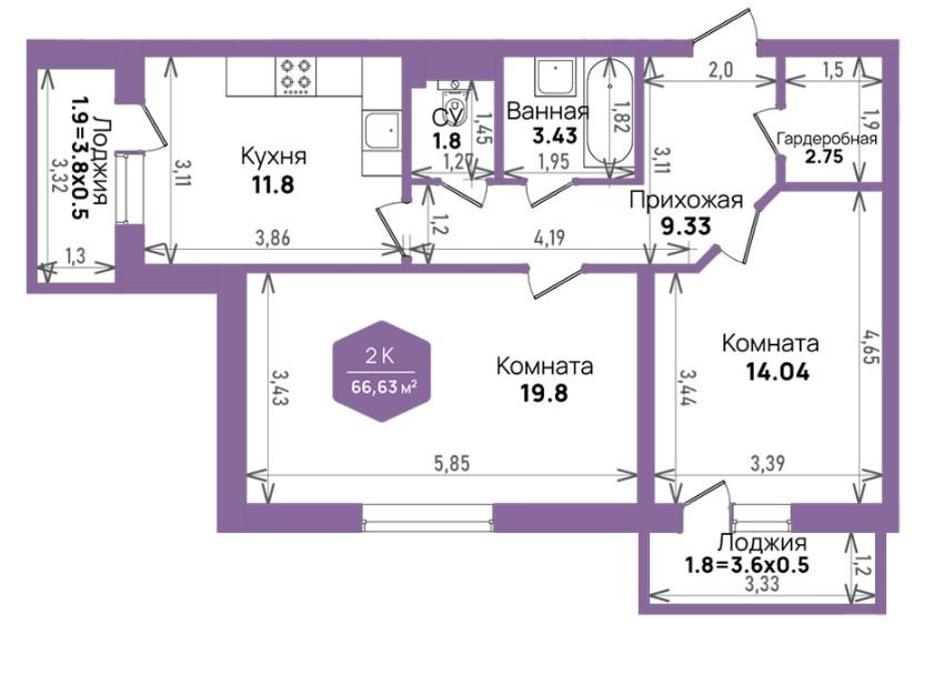 Продается 2-х комн. новостройка, 66.63 кв.м., 2/24 эт
