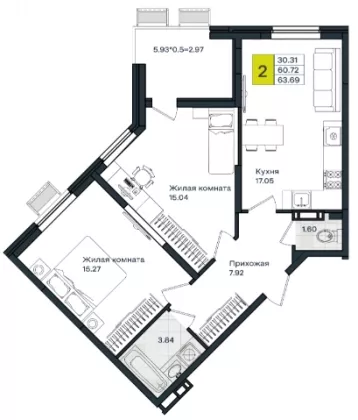 Продается 2-х комн. новостройка, 63.69 кв.м., 4/8 эт