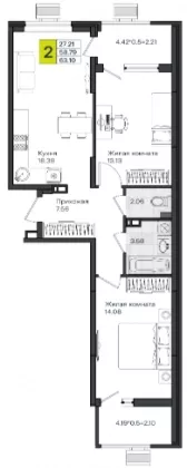 | Жилая площадь | 27.21 |