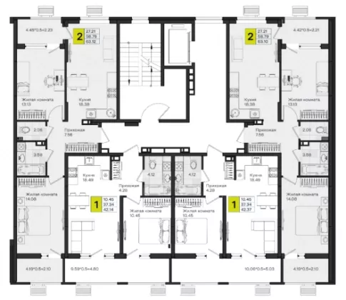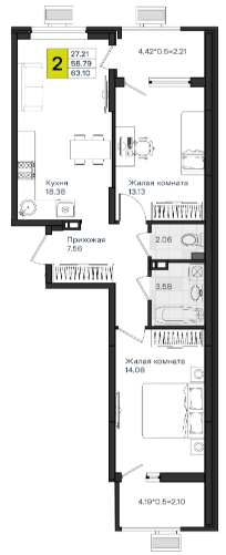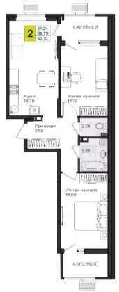 Продается 2-х комн. новостройка, 63.1 кв.м., 5/8 эт