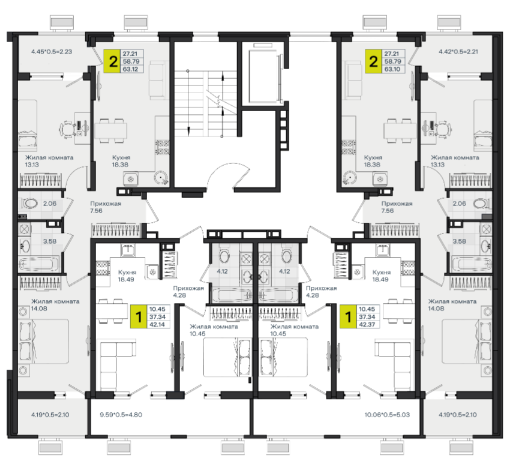 Продается 2-х комн. новостройка, 63.12 кв.м., 8/8 эт