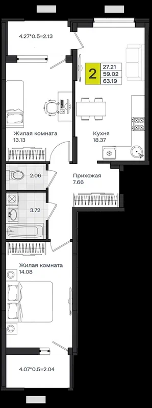 | Жилая площадь | 27.21 |