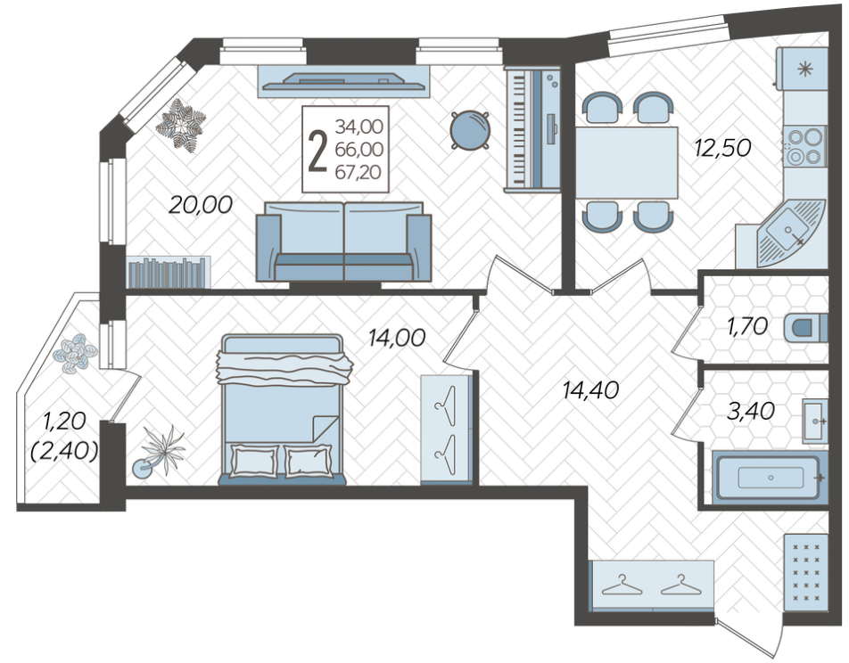 Продается 2-х комн. новостройка, 67.3 кв.м., 3/16 эт