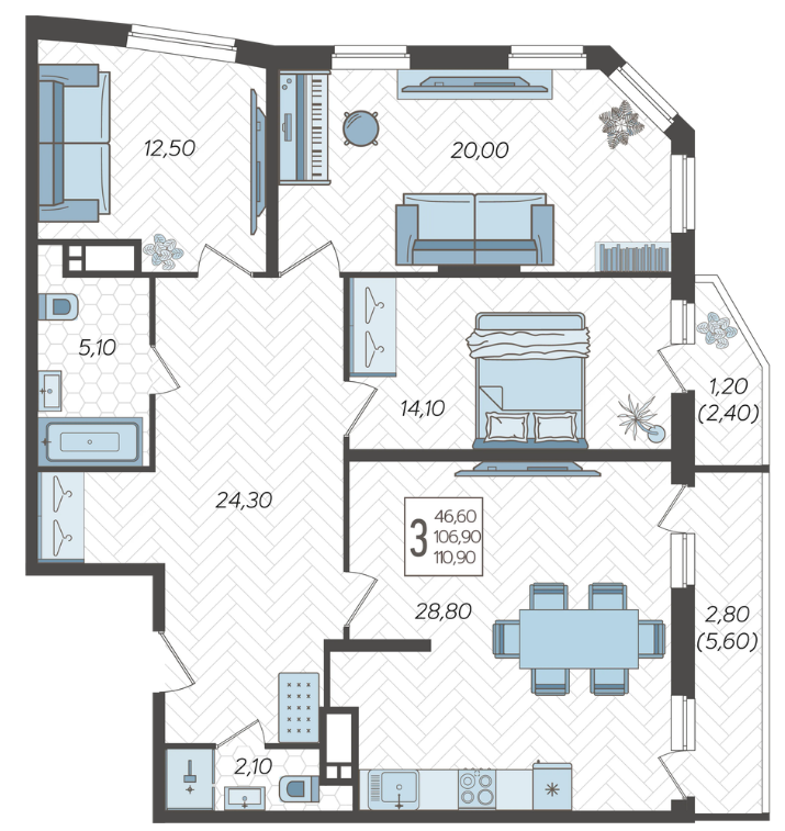 Продается 3-х комн. новостройка, 113.1 кв.м., 16/16 эт