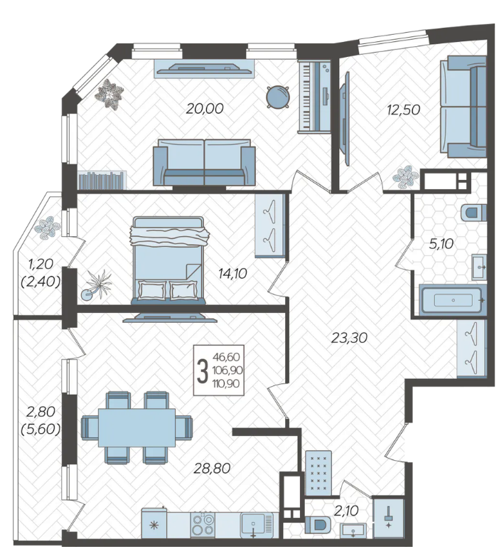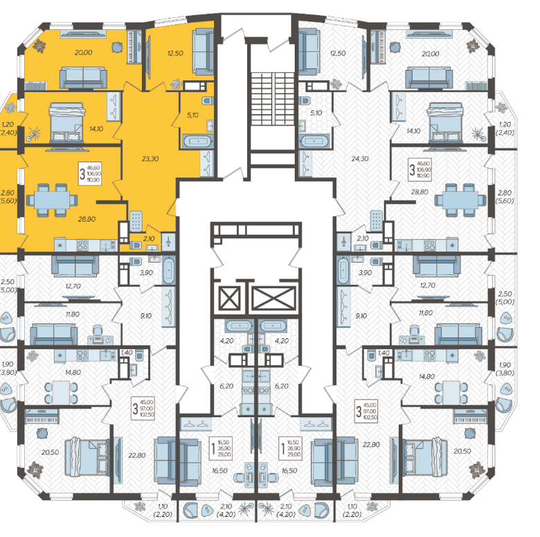 Продается 3-х комн. новостройка, 113.4 кв.м., 16/16 эт