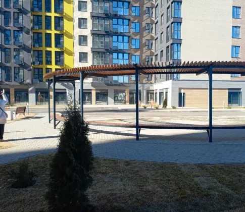 В жилом комплексе своя особая внутренняя среда, уютные зеленые дворы со скамейками, игровые и спортивные площадки с безопасным покрытием. Прогулочные аллеи с фонтаном!