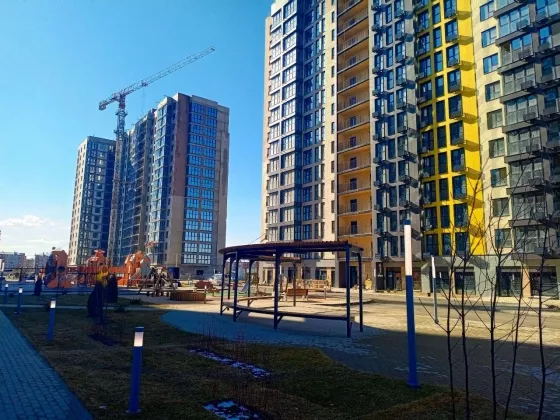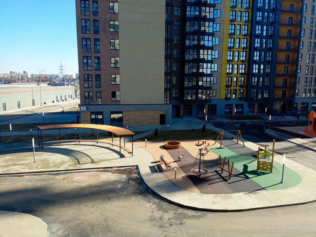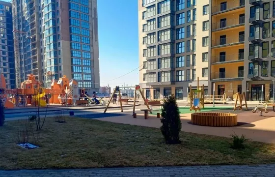 В жилом комплексе своя особая внутренняя среда, уютные зеленые дворы со скамейками, игровые и спортивные площадки с безопасным покрытием, прогулочные аллеи с фонтаном!