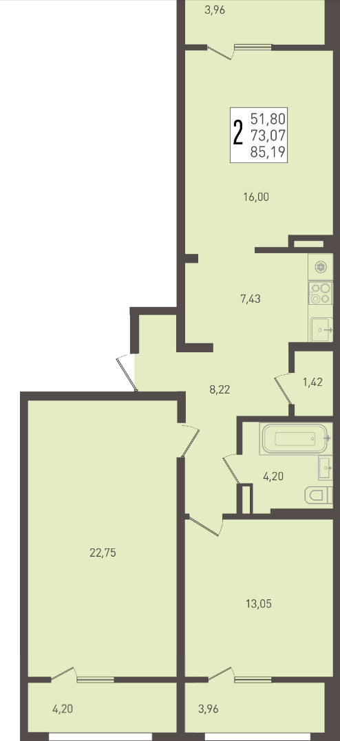| Площадь, кв.м. | 85.19 |