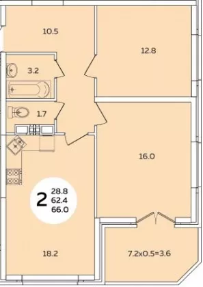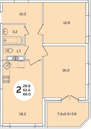 Продается 2-х комн. новостройка, 66 кв.м., 14/24 эт