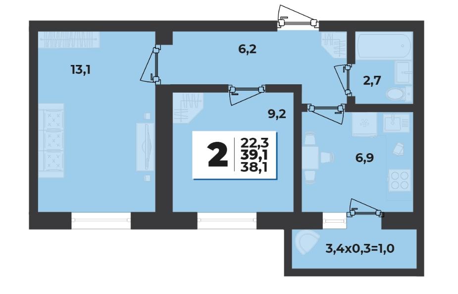 Продается 2-х комн. новостройка, 39 кв.м., 3/5 эт