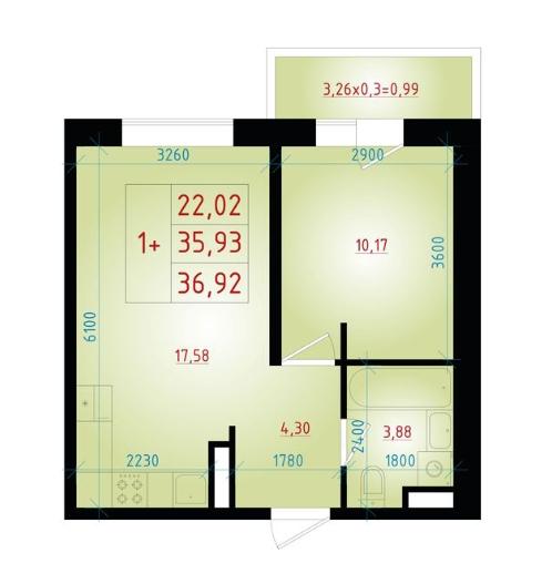 Продается однокомнатная новостройка, 36.52 кв.м., 4/9 эт