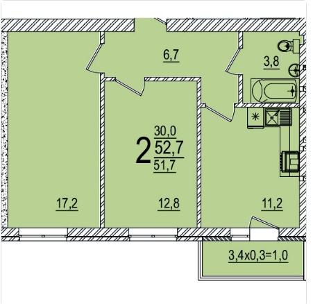| Площадь, кв.м. | 52.7 |