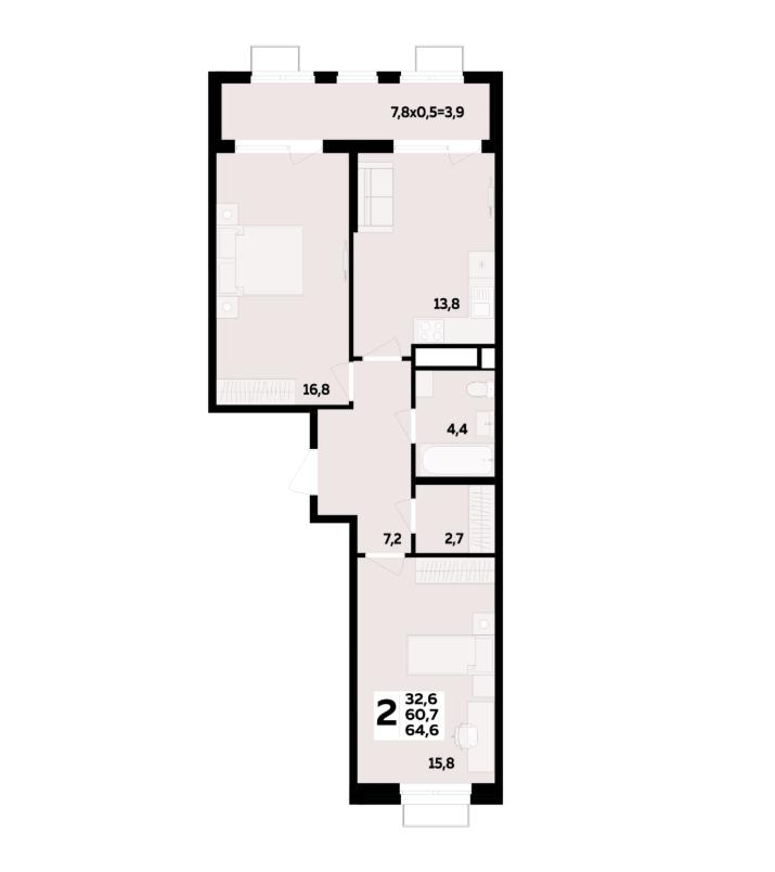 Продается 2-х комн. новостройка, 64.6 кв.м., 6/16 эт