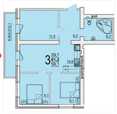 Продается 3-х комн. новостройка, 61.2 кв.м., 2/5 эт