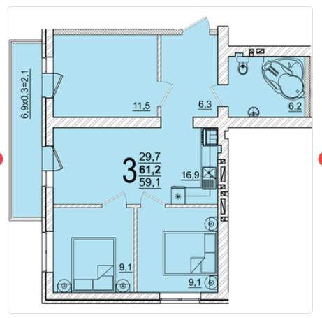 | Площадь, кв.м. | 61.2 |