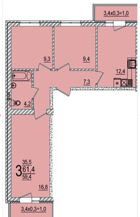 Продается 3-х комн. новостройка, 61.4 кв.м., 5/5 эт