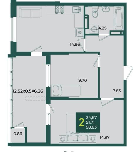 Продается 2-х комн. новостройка, 58.83 кв.м., 12/18 эт