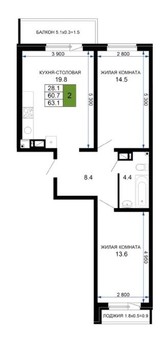 Продается 2-х комн. новостройка, 63.88 кв.м., 6/16 эт