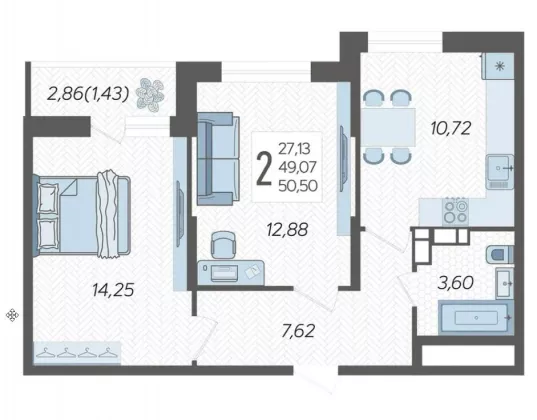 Продается 2-х комн. новостройка, 50.5 кв.м., 12/16 эт
