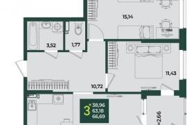 Продается 3-х комн. новостройка, 66.69 кв.м., 2/18 эт