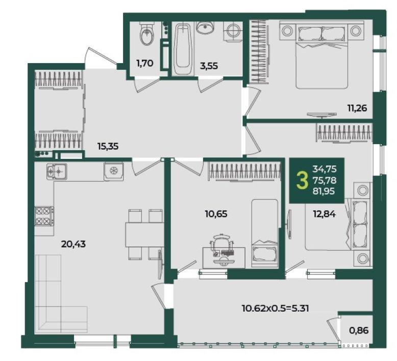 | Площадь кухни, кв.м. | 20.43 |