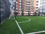 Коммерческие блоки занимают нулевые этажи. На территории двора расположено семиэтажное здание под офисы и торговые площади.