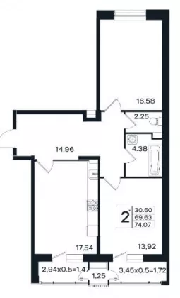 | Площадь, кв.м. | 74.07 |