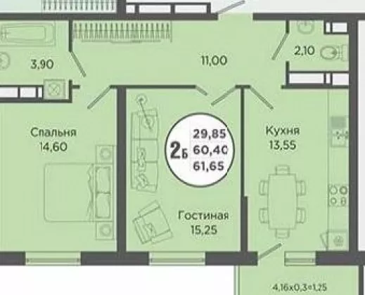 Продается 2-х комн. новостройка, 62 кв.м., 13/19 эт