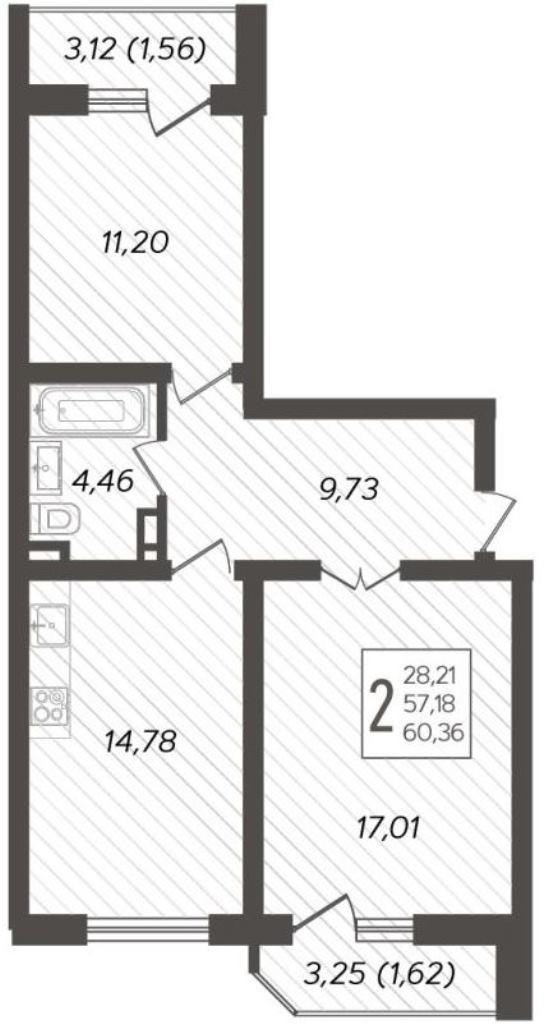 Продается 2-х комн. новостройка, 60 кв.м., 4/25 эт